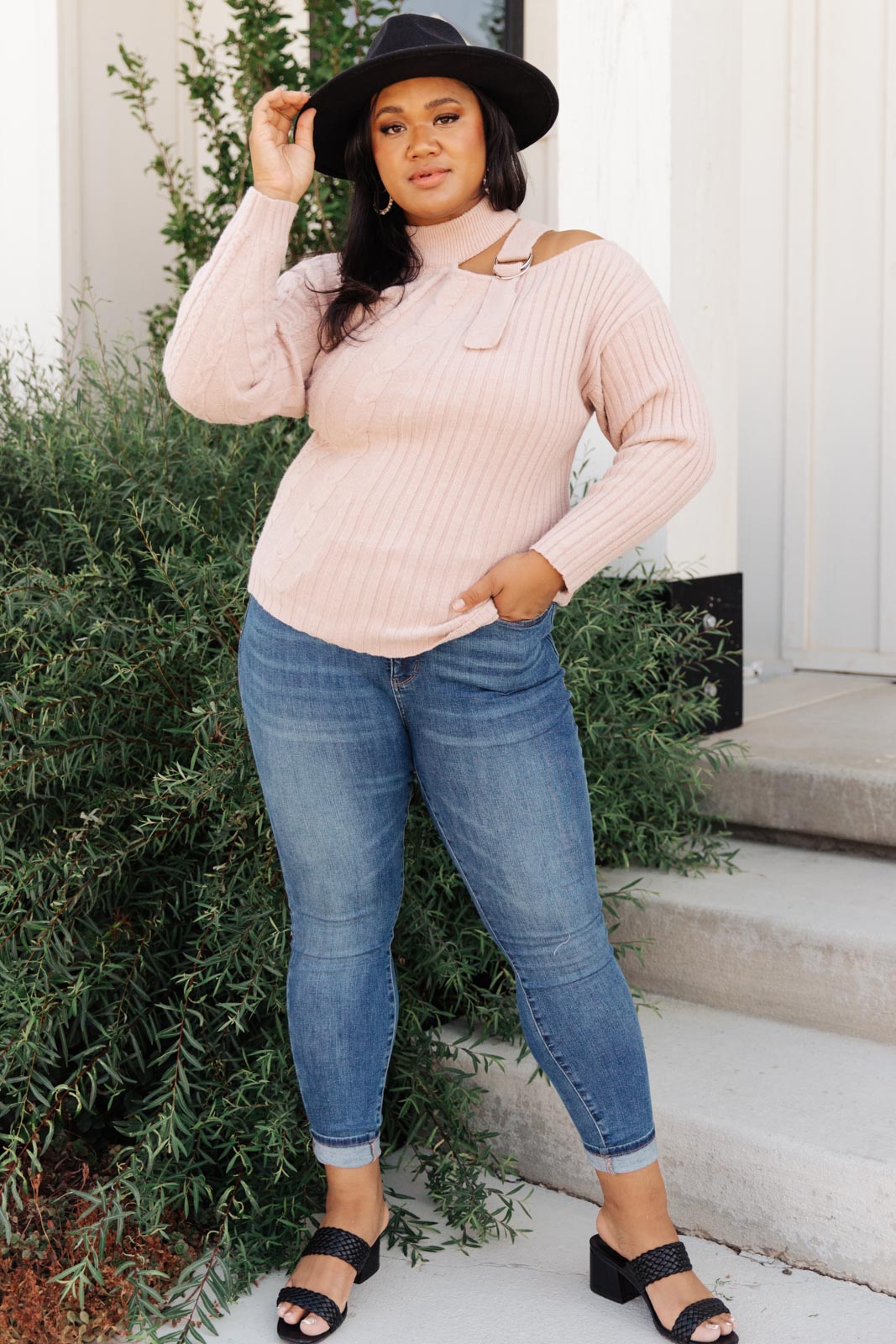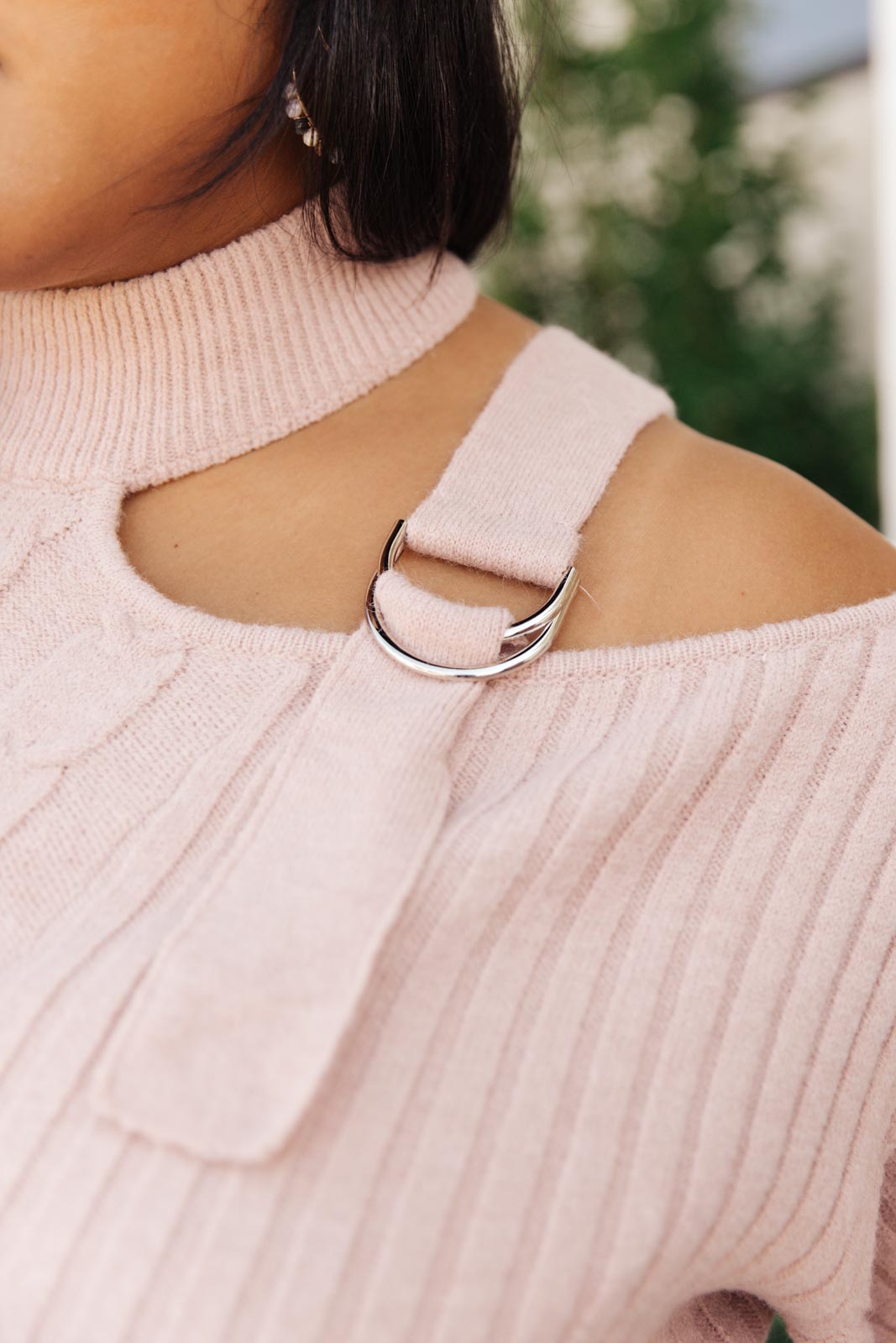Keywords: Pink Sweater, Pink Top, Mock Neck, Turtleneck Sweater, Cold Shoulder Top